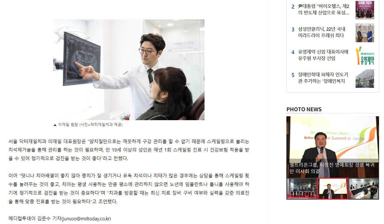 4명 중 1명 앓는 치주 질환, 스케일링과 정기검진이 도움 (메디컬투데이 언론보도)
